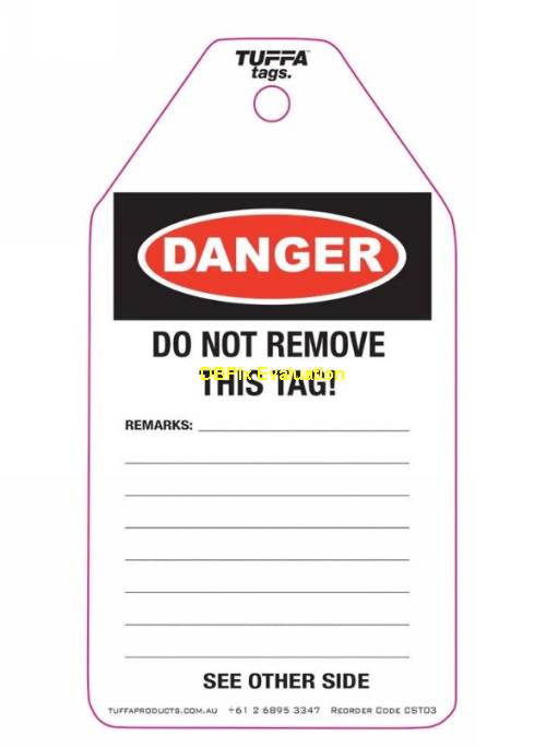 • Tuffa SST01 DANGER DO NOT OPERATE Tags RED/WHT/BLK 125X75MM(Pk100)